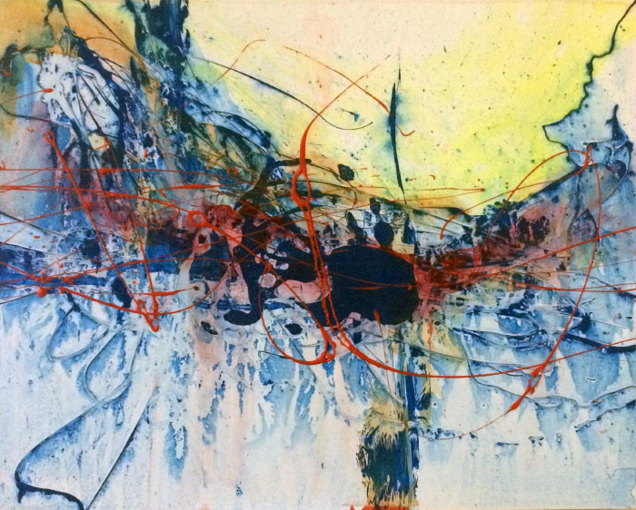 Evalynn Alu’s paintings pull the viewer into vast, mysterious spaces, where careening vectors of movement embody the forces of nature. With dizzying shifts in scale, she creates sublime mindscapes, dappled with light. Objective, abstract form is a term the artist uses to suggest the tension between her painting’s physical materials, and the riddle of their beauty. A virtuoso painter, she loves to experiment and improvise. She performs complex, technical investigations, building upon her expertise with etching, lithography and watercolor, to create sweeping representations of the universal energies constituting our reality. Alu’s paintings are about wordless thought --- and spiritual longing. Her paint handling, in all its multiplicity, reminds us why this art form persists. In the right hands it can be serious fun, filled with the emotions of the moment, and an unmistakable profundity. Alu’s work gives us the world as a kinetic event, seen by the mind’s eye with the purity of a sudden revelation.