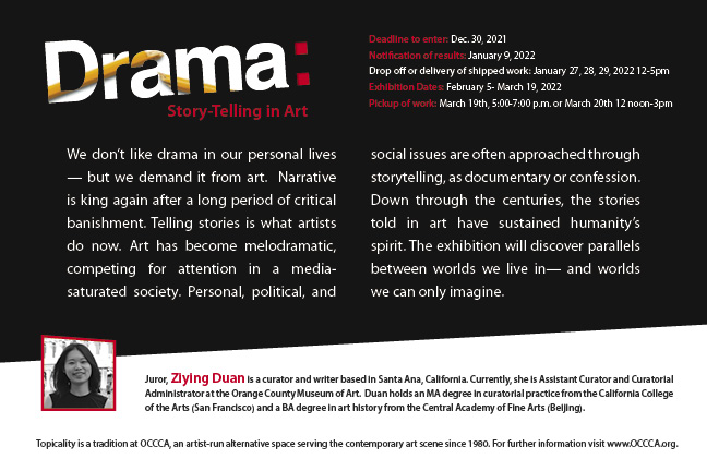 Exhibition Dates:Feb. 5- March 19, 2022 Juror: Ziying Duan, Assistant curator Orange County Museum of Art