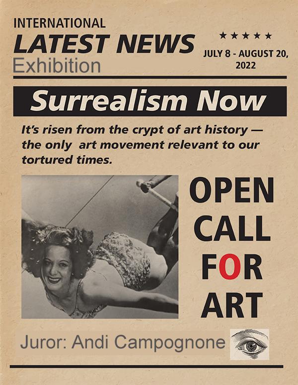 It has risen from the crypt of art history, the only art movement relevant to our tortured times. Surrealism’s rank perfume permeates the galleries, the cinemas and the streets. Surrealism Now!is a sinister cabaret, full of dreamers with eyes closed, sitting at the same table as insomniacs with nightmares. Those artists that heard the siren song of Surrealism emanating from the angel trumpets of despair, indulged our insatiable desire for a gesture of defiance against everything that’s false and stupid.