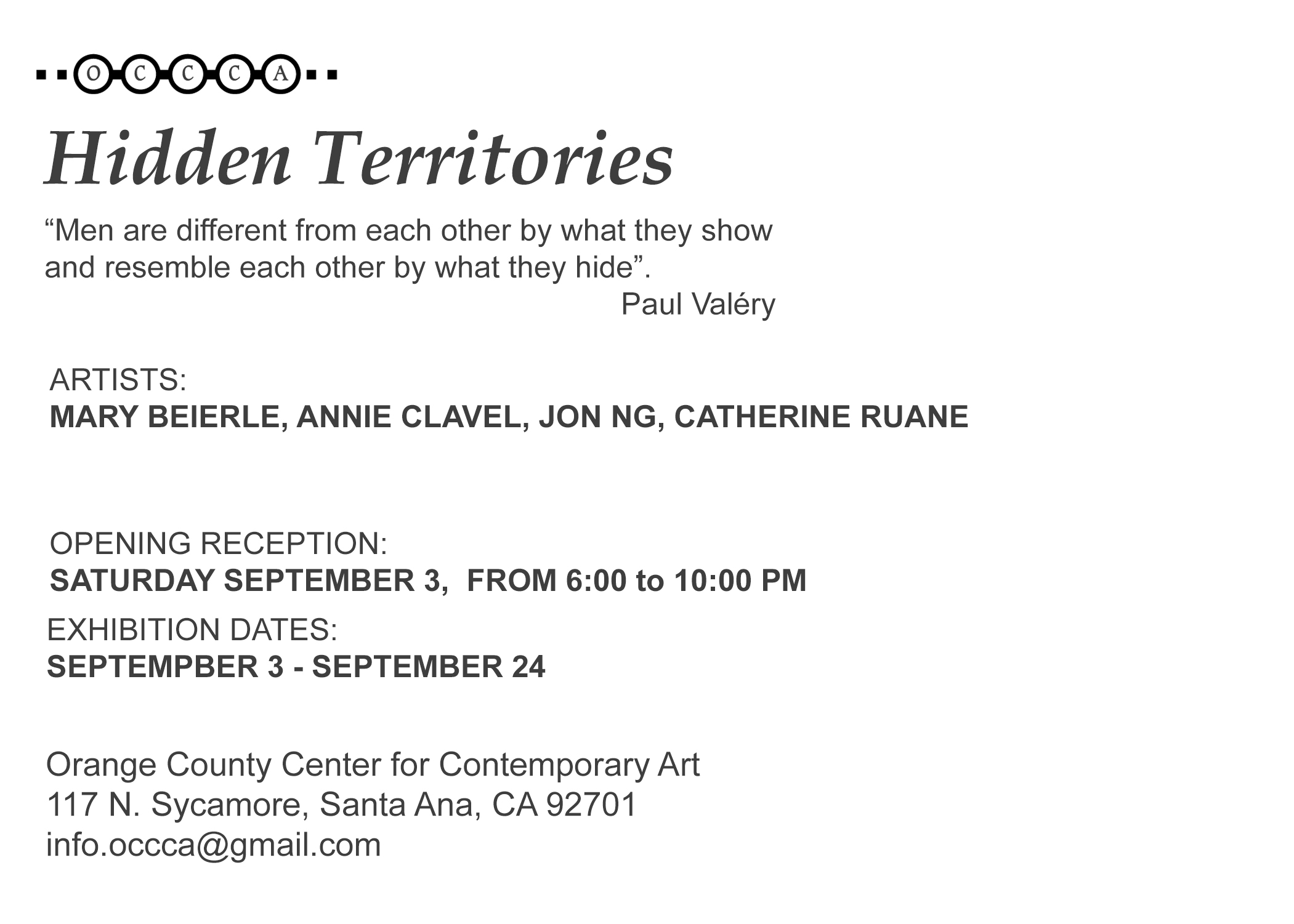 Hidden Territories, Exhibition @ OCCCA