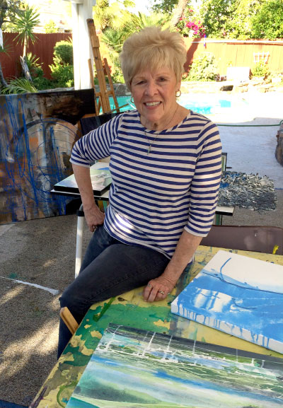Evalynn J. Alu was born and raised in Los Angeles. She received her degree in art at California State University, Fullerton in 1982. Having gone through a long representational period she gradually discovered a need and fascination with objective abstract form mostly derived from the universal forces that are forever present. Experimentation with her pallet as well as with her application soon became her focal point. Gradually layering paint using many techniques associated with watercolor and oil painting allowed Evalynn to create her feelings and moods present at the time. Experimentation and very seldom using a brush led her to achieve rewarding results. Her hope is that her work will allow viewers to discover for themselves what their own mood or lifestyle pulls from each piece.