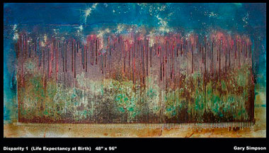 Simpson uses fresco to create collages made of soil retrieved from—ultimately—all