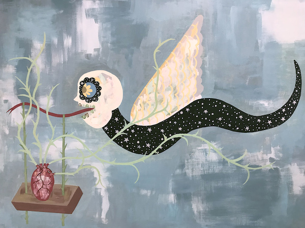 Dino Perez’s “It’s Time The Tale Were Told” solo exhibition explores his family’s migration from Mexico to the United States, his coming of age in Santa Ana, and the struggle of identity being the child of immigrants and finding himself through art. The series of work encompasses a surreal style—using iconography that is representative of the artist’s life story. Perez’s art will bring inspiration and comfort to those struggling with the pressures of being first generation in Santa Ana, California.